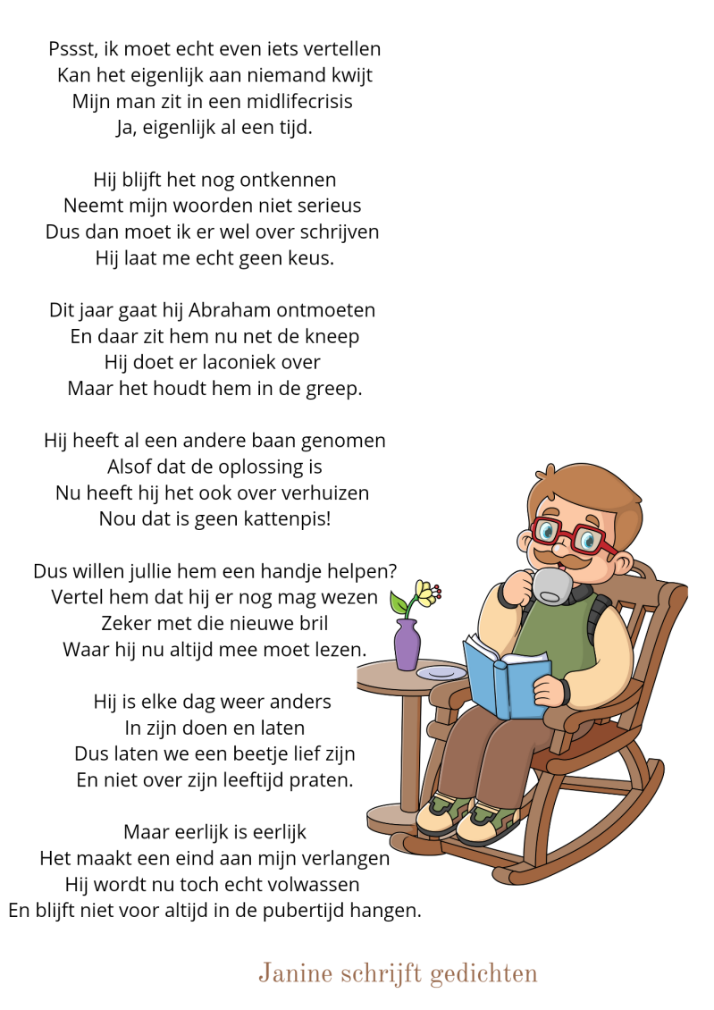 Ook Erik (mijn man) moet het regelmatig ontgelden in mijn gedichten. Gelukkig kan hij er om lachen😁